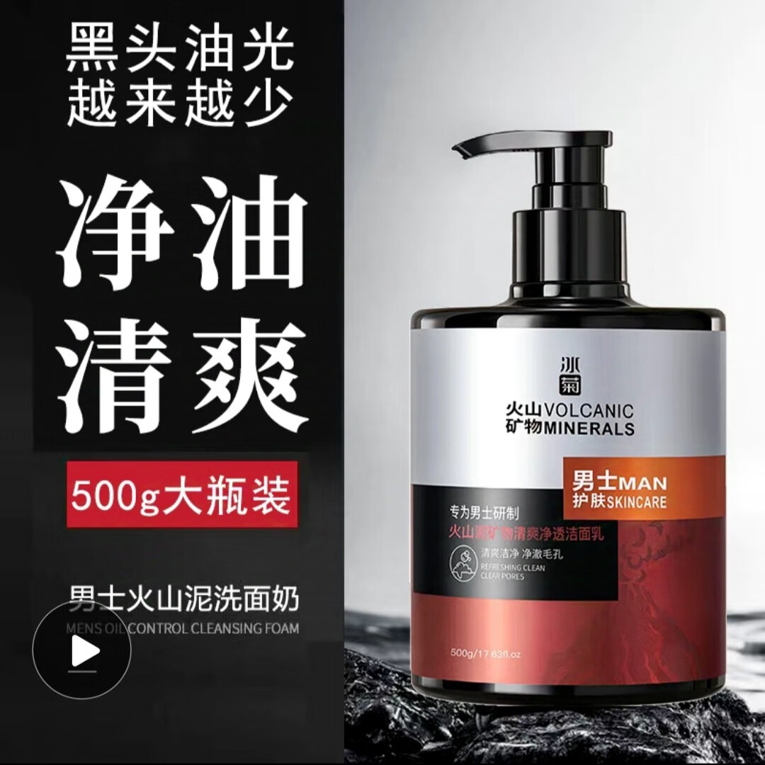 火山泥矿物男士专用洗面奶深层清洁去黑头控油祛痘淡印清爽洁面乳
