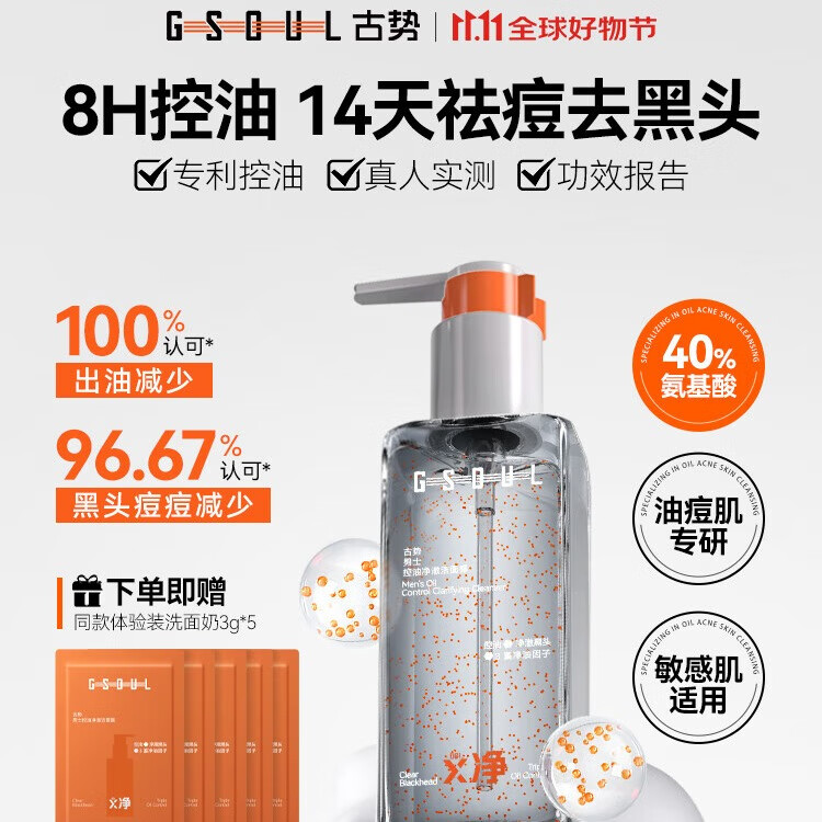 古势洗面奶男士专用控油祛痘去黑头收缩毛孔深层清洁氨基酸洁面乳150g