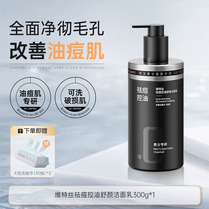维特丝维特丝男士专用洗面奶控油祛痘除螨收缩毛孔去黑头氨基酸保湿洁面 祛痘控油洁面乳1瓶
