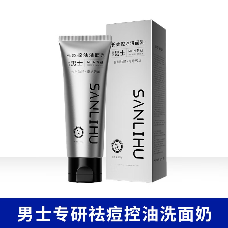 三里湖(SANLIHU)三里湖新款男士专用洗面奶控油祛痘去黑头清洁毛孔角质氨基酸洁面 一支装男士控油祛痘洗面奶