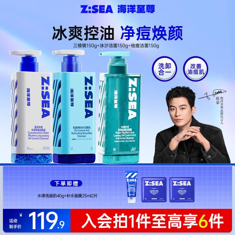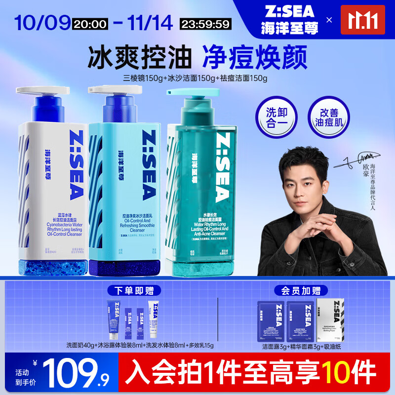 海洋至尊洗面奶 三棱镜氨基酸洗面奶男士专用 控油祛痘去黑头洁面乳套装
