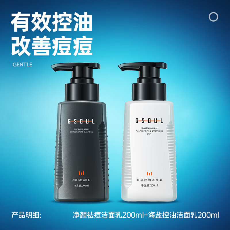 通用品质健康【JD健康】洗面奶祛痘男士专用控油去黑头温和清洁抗痘氨 两瓶装 (早控油 晚祛痘) 200ml