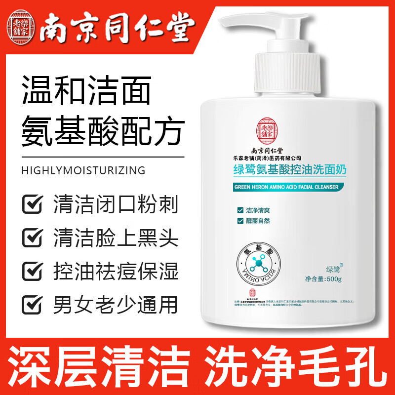 南京同仁堂氨基酸洗面奶控油祛痘除螨虫去黑头洁面乳男士女士青少年学生专用