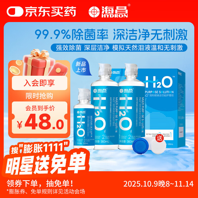 海昌H2O隐形眼镜多功能护理液美瞳保湿360ml*2+120ml润滑清洁镜片