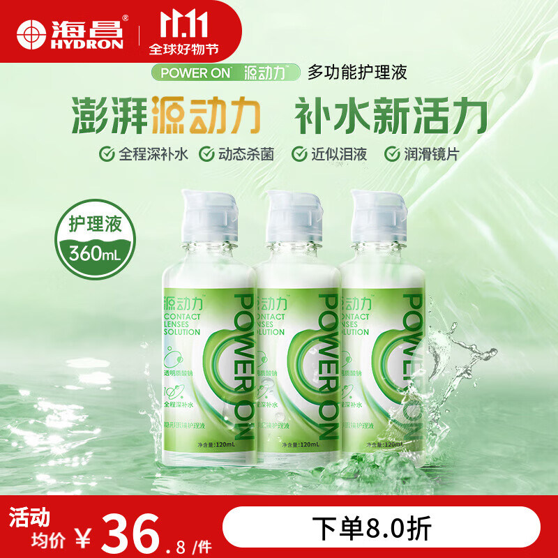 海昌源动力美瞳透明隐形眼镜水护理液锁水保湿120/500ml大小瓶组合装 瞬眸360ML【居家首选】