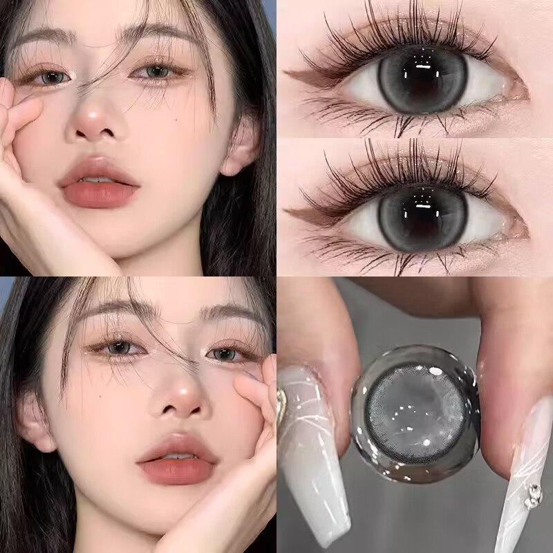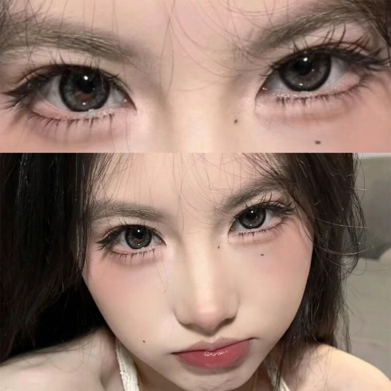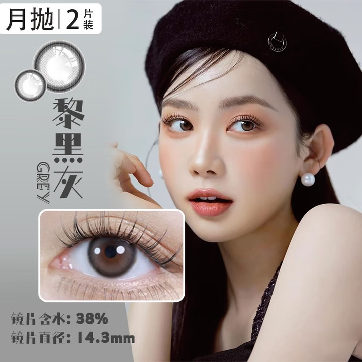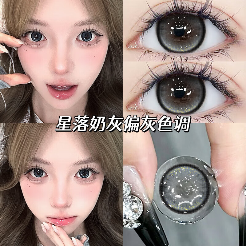 2片装】美瞳月抛带度数隐形眼镜小大直径ws 燕麦奶(水雾灰)14.5 mm(2片装) 0度