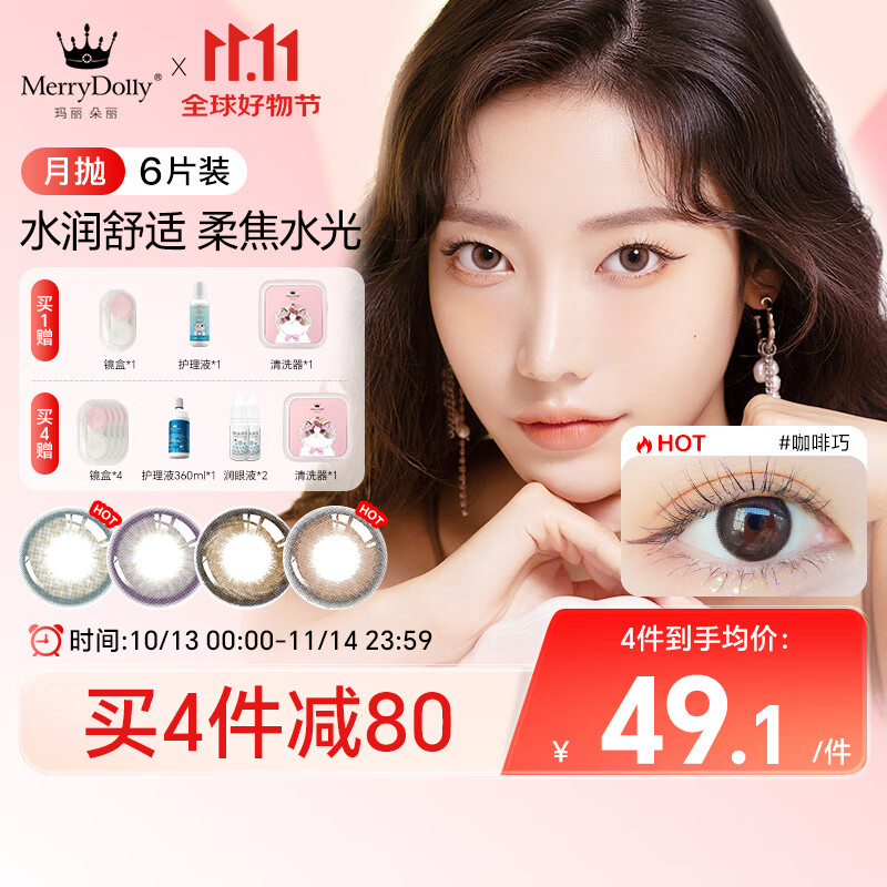 Merry dolly美瞳月抛6片装 彩色隐形眼镜小直径自然带度数男 韩国原装进口 奶茶棕【通透甜心棕】 650度