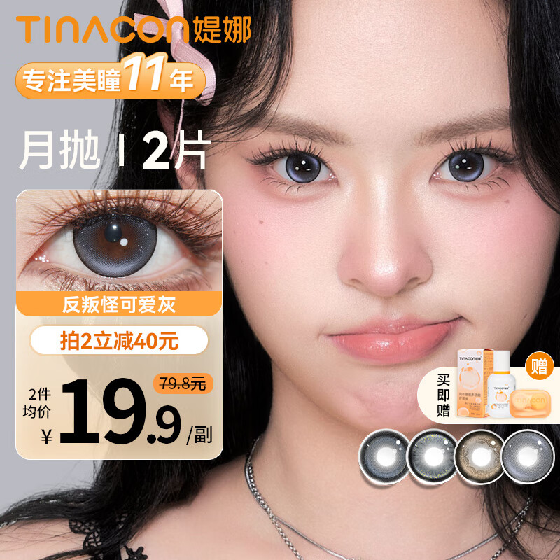tina媞娜美瞳大小直径缇娜隐形眼镜带度数三明治工艺 2片装 随机半年抛/年抛/月抛/季抛 0度