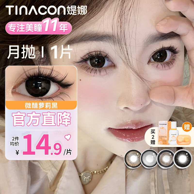 媞娜Tina缇娜美瞳月抛隐形眼镜彩色大小直径黑色美瞳带度数素颜日常 【一副请拍2-单片装】微醺萝莉黑14.5mm-热卖 175度