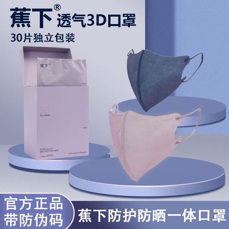 蕉下高颜值防尘防晒一次性黑色口罩3d立体春夏防紫外线独立包装男女款 裸粉色(新款玻尿酸冰感小冰皮) 30个 M(中码12.8x12)厘米