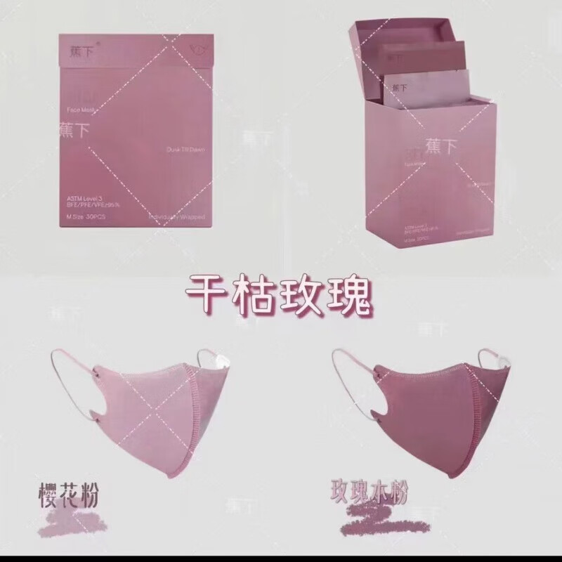 蕉下冰感防晒口罩防紫外线UPF50+轻薄透气女3d立体口罩一次性口罩 干枯玫瑰(双色各十五片)1盒 30个 L码 (大码)13.3*12厘米