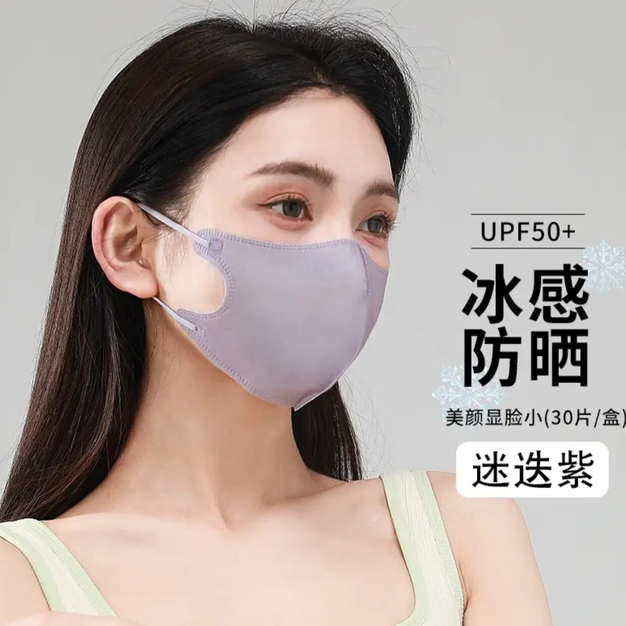 蕉下3D立体夏季防晒薄款冰感UF50高颜值必备一次性口罩防紫外线不勒耳 迷迭紫UPF50+冰感防嗮 30个 L(大码13.3x12)厘米