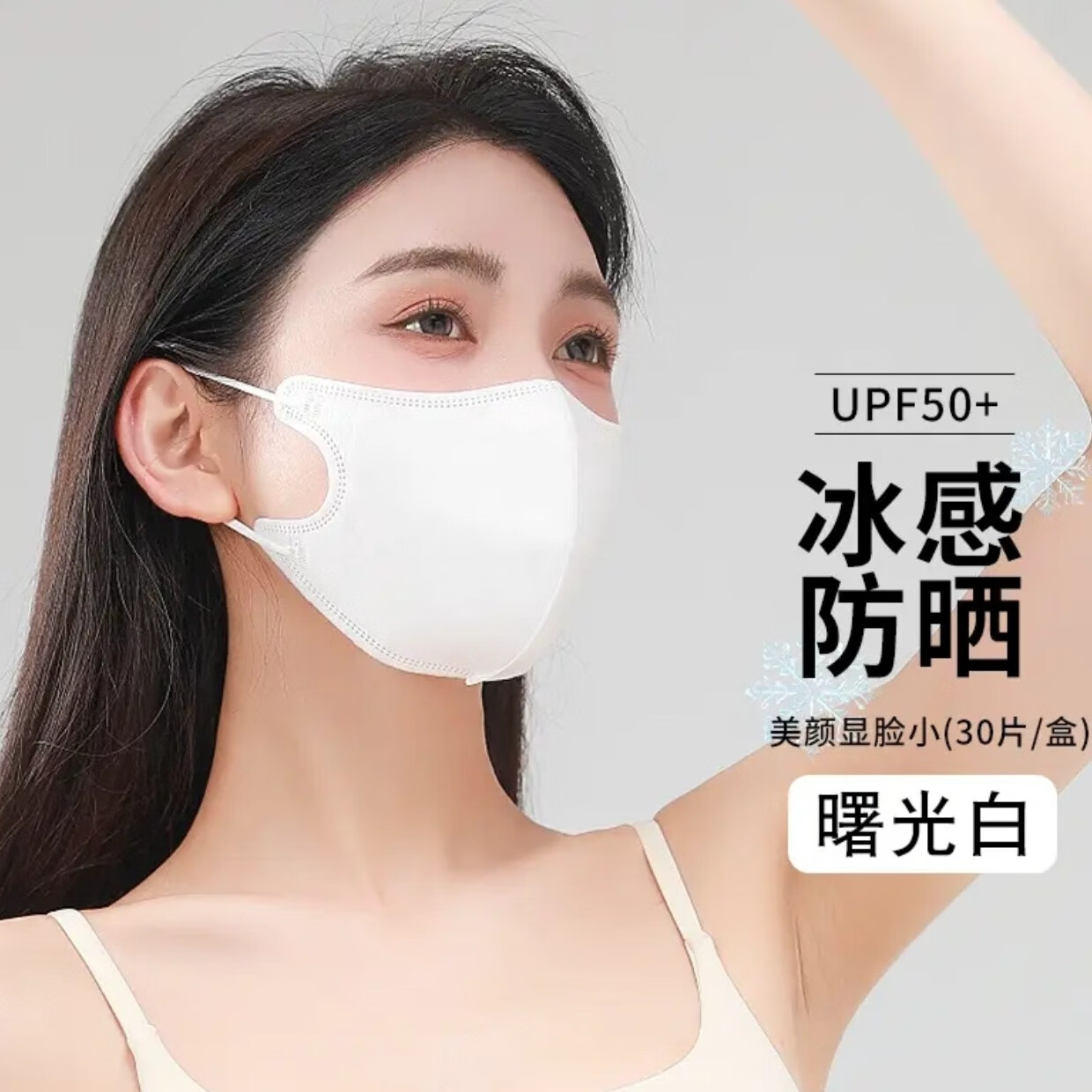 蕉下3D立体夏季防晒薄款冰感UF50高颜值必备一次性口罩防紫外线不勒耳 曙光白UPF50+冰感防嗮 30个 L(大码13.3x12)厘米