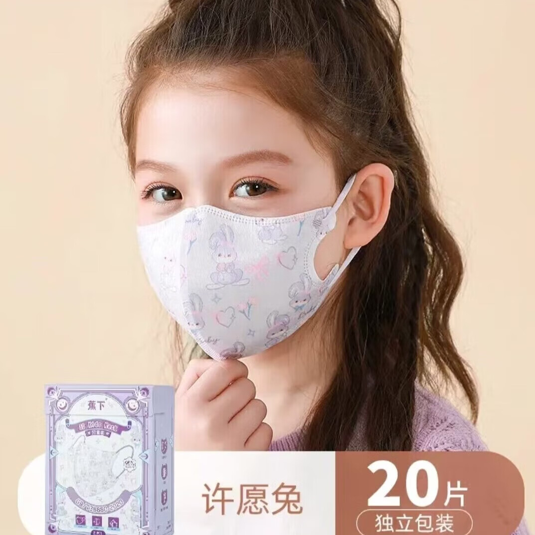 蕉下儿童口罩3d立体防晒口罩独立包装轻薄透气幼儿园儿童一次性口罩 许愿兔 1个