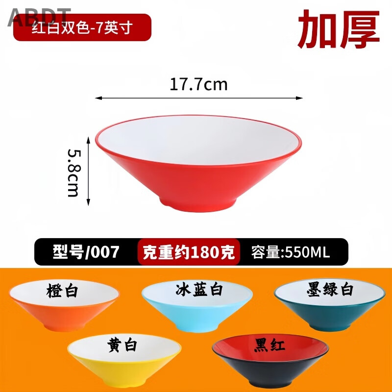 ABDT密胺面碗商用面馆专用碗塑料耐摔大碗汤碗螺蛳粉麻辣烫牛肉拉面碗 7英寸颜色备注【100个装】 耐高