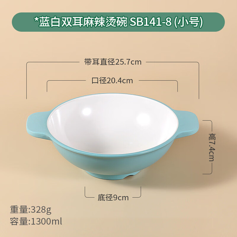 百圣牛双耳碗麻辣烫碗商用米线螺蛳粉碗冒菜碗专用密胺餐具大碗面碗n收 8英寸蓝白双耳碗[SB141-8]
