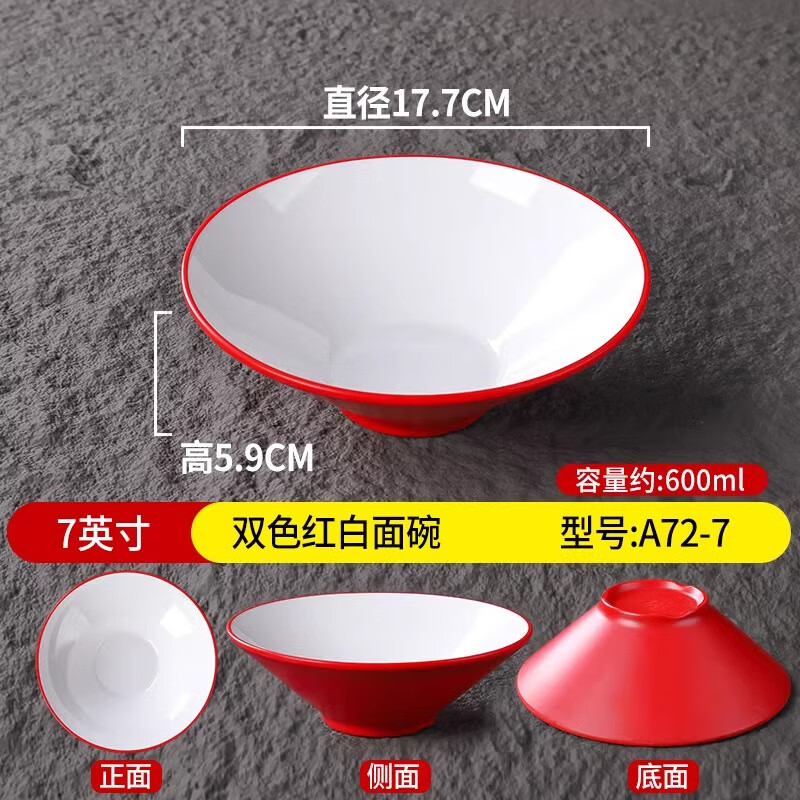 宰搂密胺斗笠碗餐具面碗面馆专用拌面碗商用螺蛳粉麻辣烫碗面条汤 6062-7红白7英寸-十个