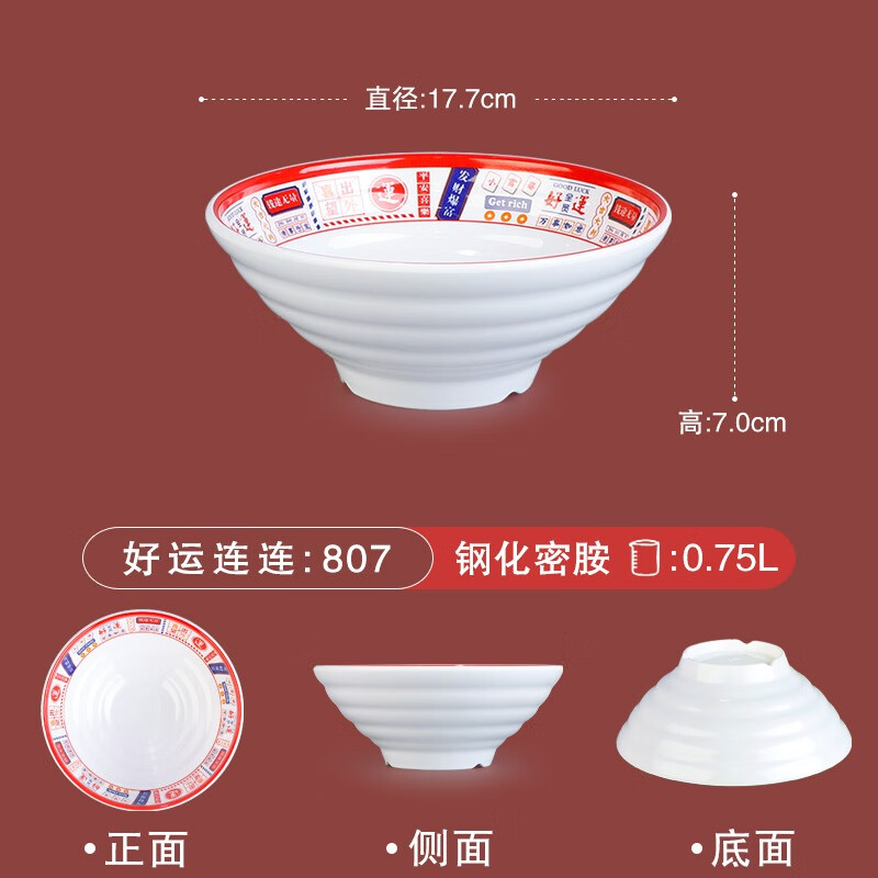 甜雅静密胺面馆专用碗防摔商用汤碗麻辣烫大碗塑料螺蛳粉米线牛肉拉面碗 好运连连807 加厚耐摔耐高温