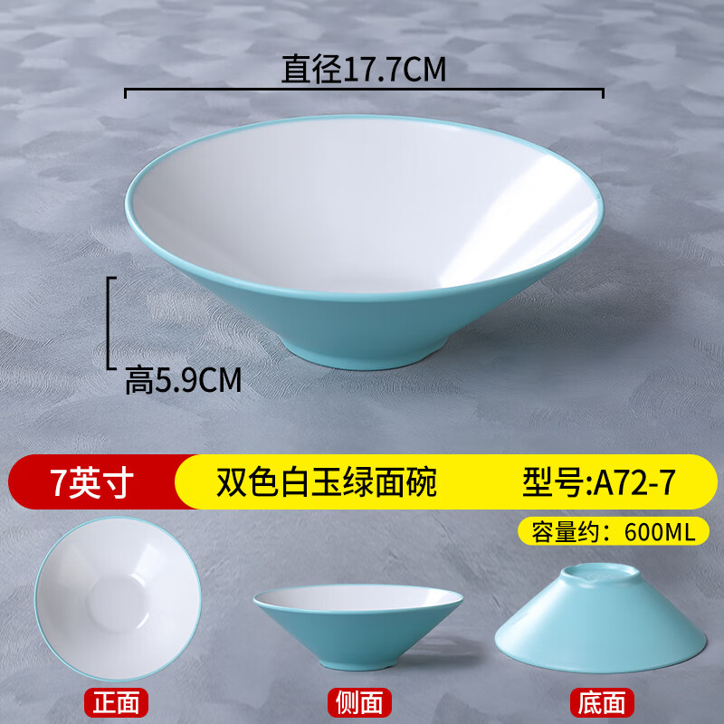 TMJD MISS螺蛳粉斗笠碗 密胺餐具面碗面馆专用斗笠碗商用螺蛳粉麻辣烫专用 7英寸双色白玉绿面碗A72-7
