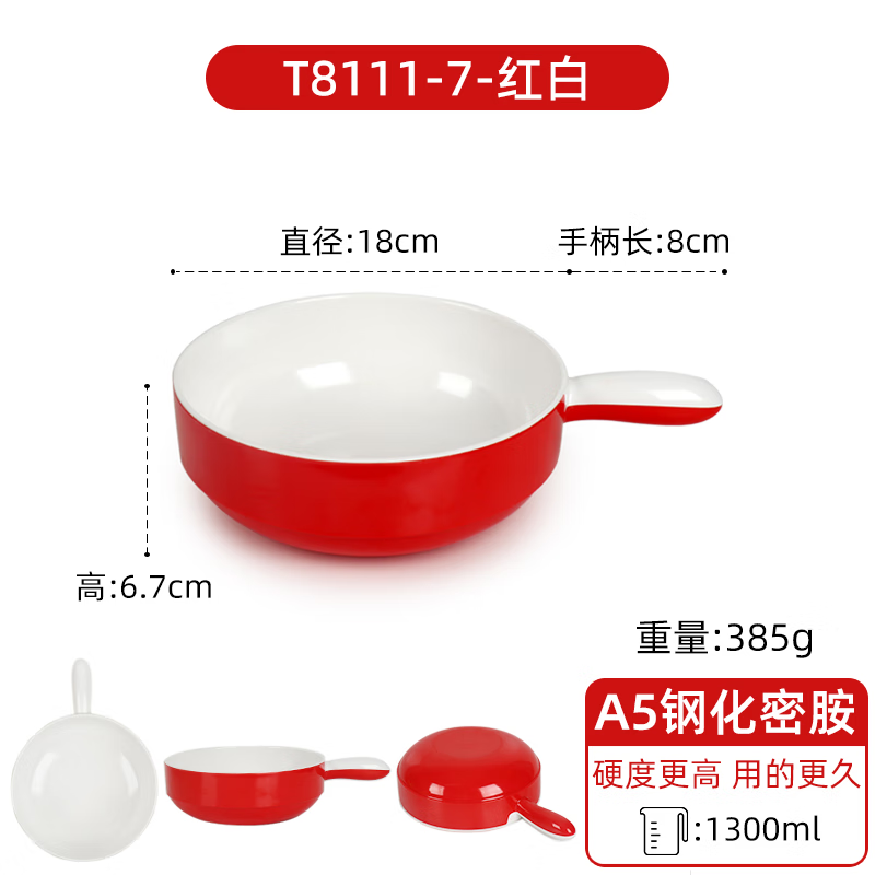 TMJD MISS螺蛳粉专用碗 密胺手柄碗商用麻辣烫专用碗网红麻辣拌螺蛳粉大碗 小号-红白【A5钢化密胺】