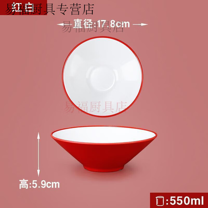 甜雅静密胺餐具斗笠碗拉面碗面馆专用碗塑料麻辣烫大碗螺蛳粉碗商用汤碗 7英寸红白色 A72-7