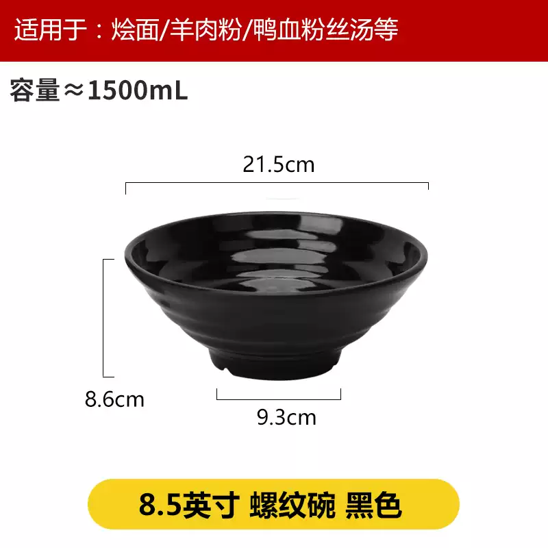 中掌柜塑料面碗商用面馆专用密胺碗仿瓷餐具螺蛳粉碗牛肉麻辣烫大碗家用 黑色8.5英寸特厚款