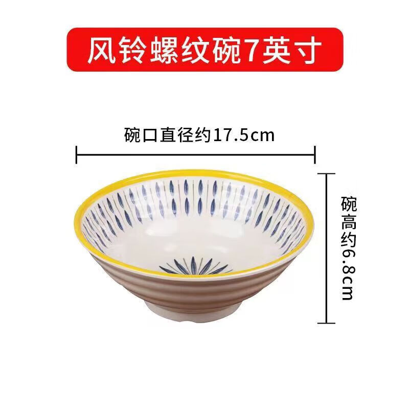 甜雅静密胺面碗商用牛肉拉面麻辣烫面馆专用加厚防捧螺蛳粉大碗塑料汤碗 风铃螺纹碗7寸