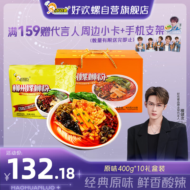 好欢螺螺蛳粉广西柳州特产方便速食酸辣米粉米线 400g*10袋礼盒装螺狮粉