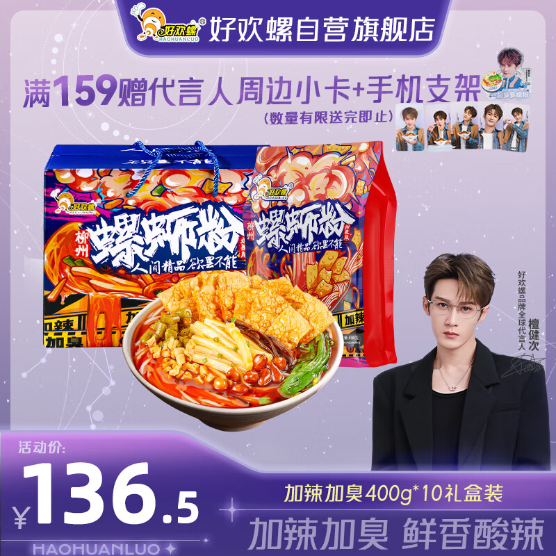 好欢螺加臭加辣螺蛳粉400g*10袋装礼盒 广西柳州特产酸辣粉宵夜螺狮粉