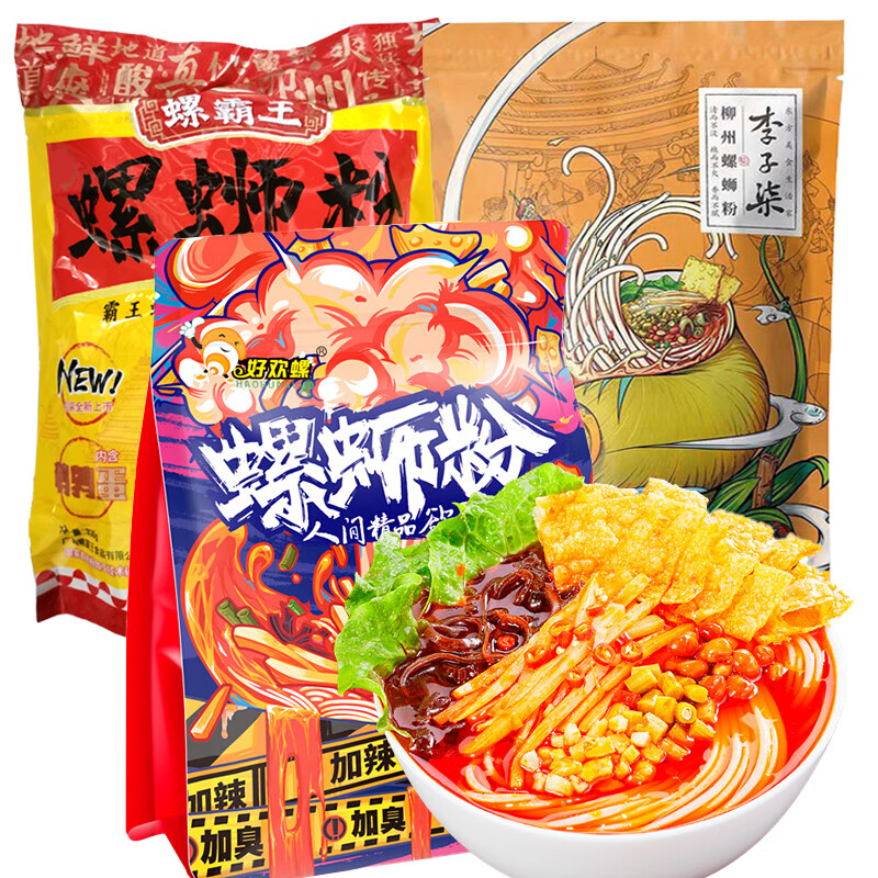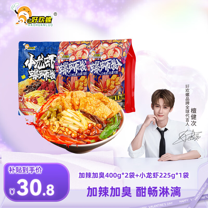 好欢螺(HAOHUANLUO)螺蛳粉经典原味螺丝粉袋装方便速食酸辣粉丝广西柳州米粉螺狮粉 加辣400g*2袋+小龙虾225g*1袋