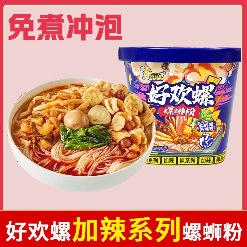 好欢螺螺蛳粉加辣冲泡桶装233g柳州柳州螺蛳粉方便速食品宵夜 加辣2桶好欢螺冲泡螺蛳粉233g
