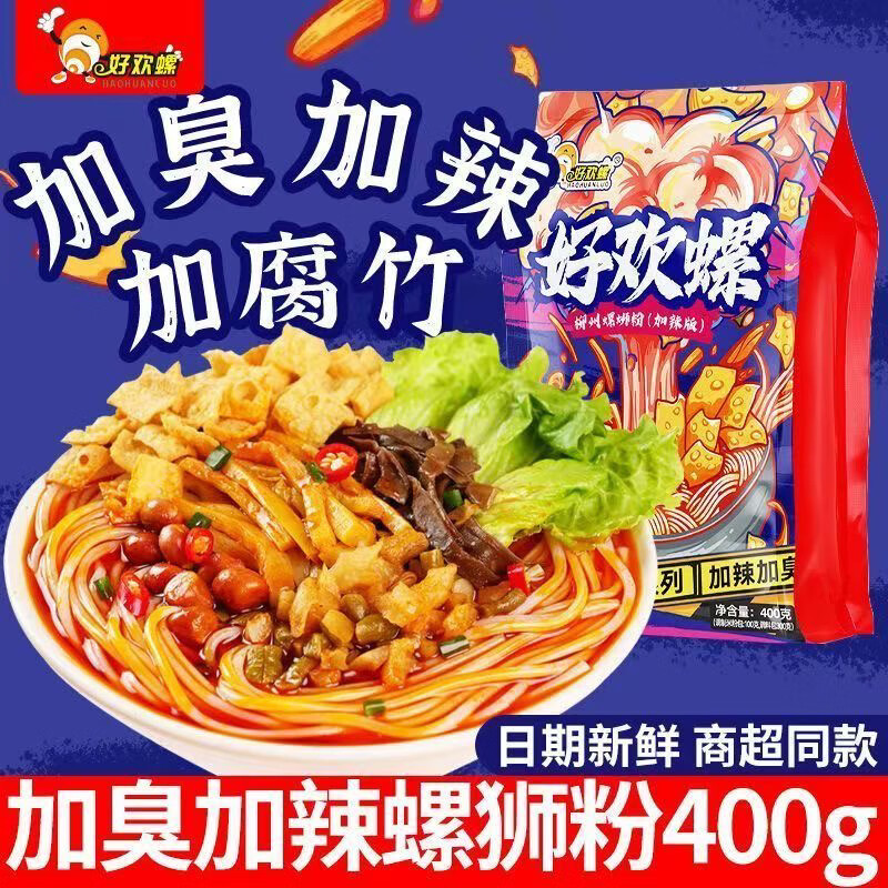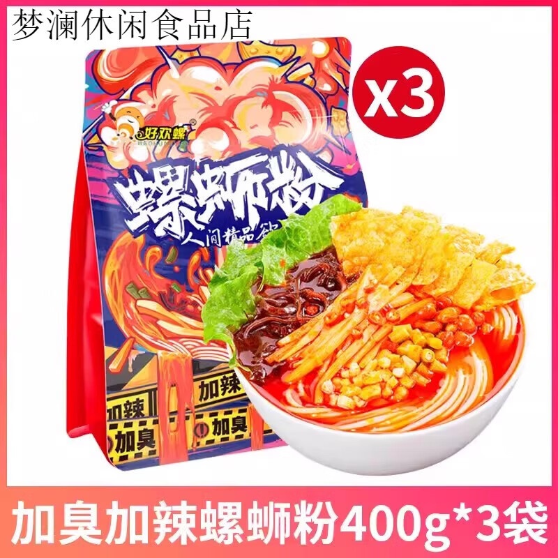 好欢螺螺蛳粉加辣加臭400g柳州特产夜宵速食米粉螺狮粉螺蛳粉 好欢螺加臭加辣400g*3袋--