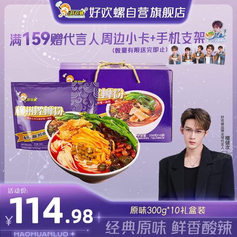 好欢螺 螺蛳粉广西柳州特产 酸辣米粉方便速食经典原味300g*10袋礼盒装