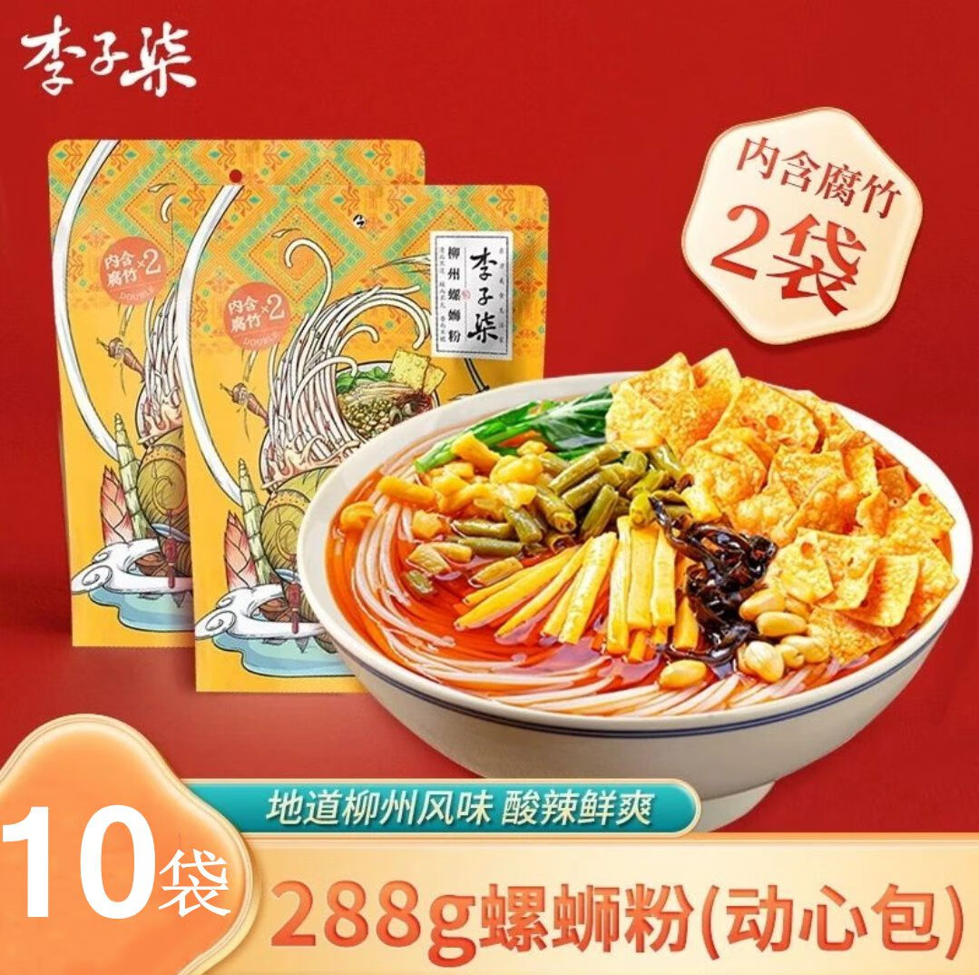 李子柒螺蛳粉11袋礼盒广西特产老坛酸笋螺狮粉丝夜宵速食柳州米粉 [内含两袋腐竹]李子柒288g*10袋