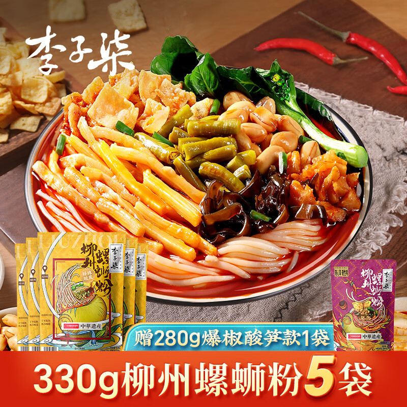 李子柒螺蛳粉柳州螺狮粉广西螺蛳粉特产米粉速食泡面 面米线 线5袋装 【赠爆椒280g1袋】螺蛳粉330g*5袋
