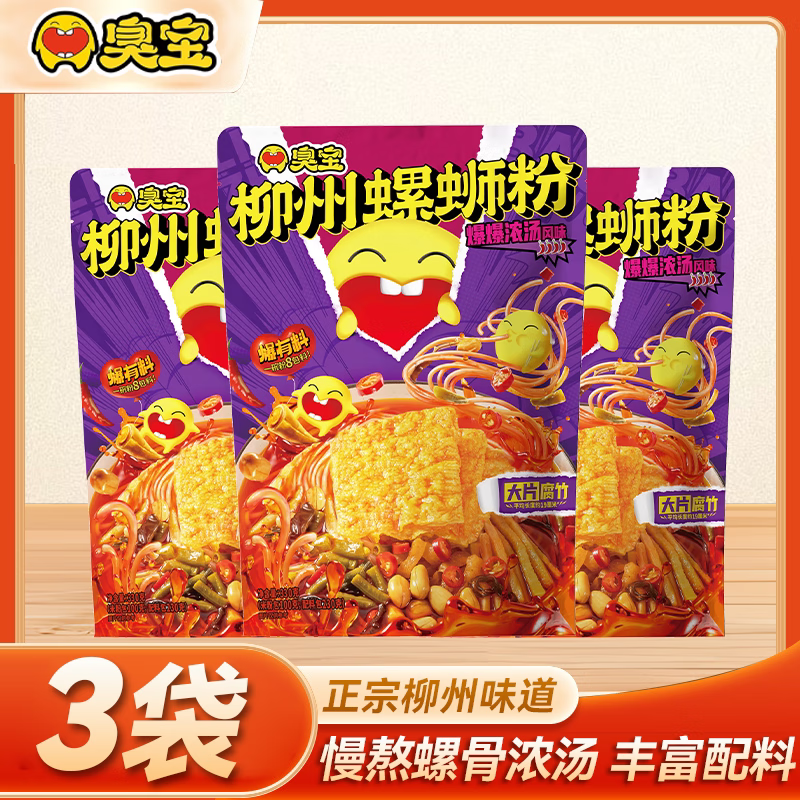 螺蛳粉爆爆浓汤螺蛳粉柳州正宗螺狮粉官方旗舰店大腐竹加辣臭 [3袋过瘾装]臭宝柳州螺蛳粉3