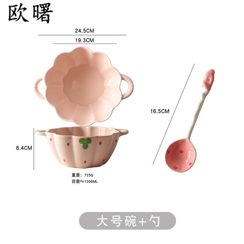 双耳草莓南瓜大号汤碗陶瓷家用2023新款面碗