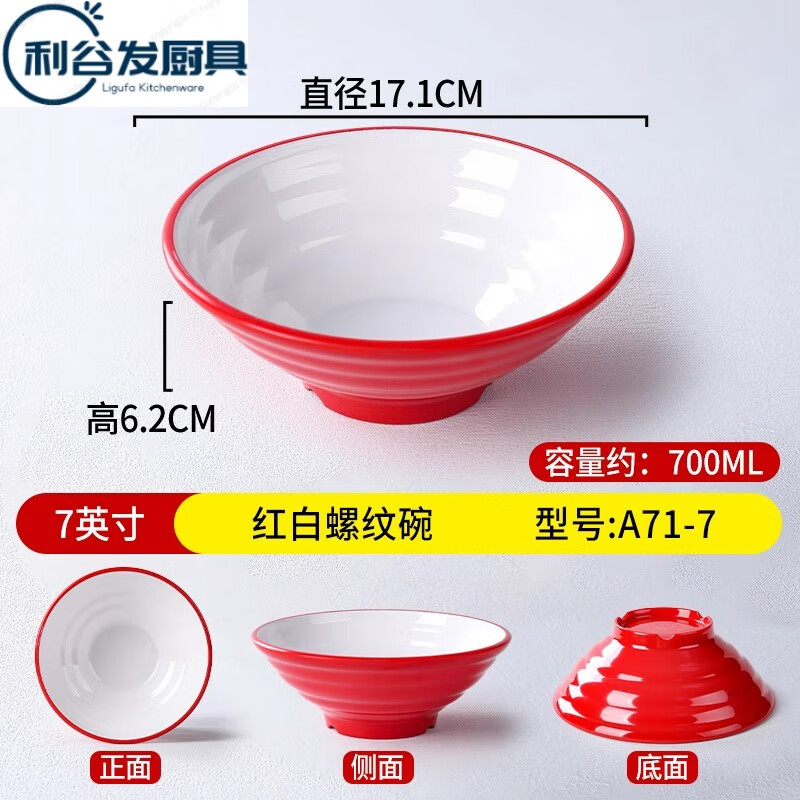 拓进德国进口品质密胺餐具螺纹面碗商用汤粉碗面馆专用仿瓷螺蛳粉拌面 7英寸红白螺纹面碗 【加厚】