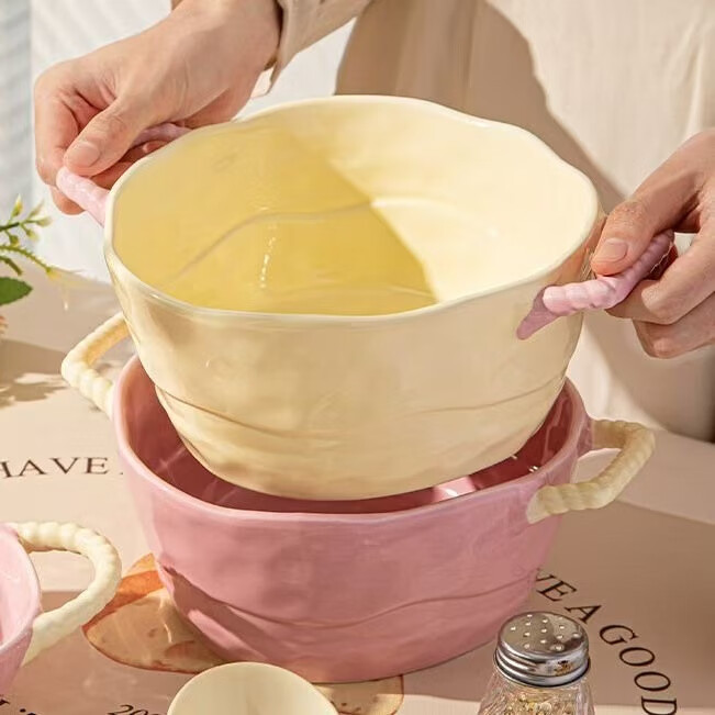 佩尔森双耳汤碗家用2025新款泡面碗高颜值大碗奶油风汤面碗陶瓷