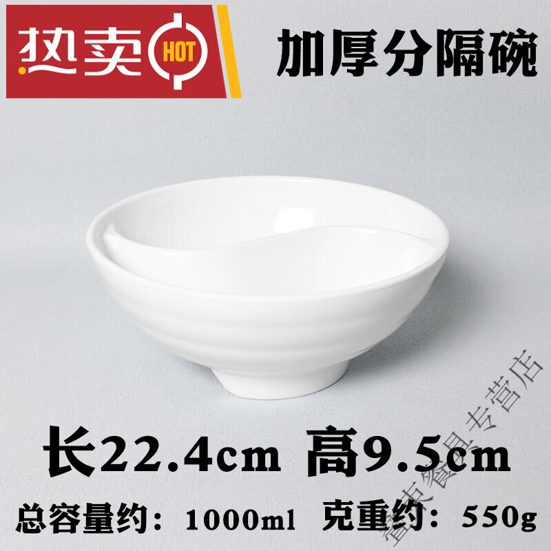 鸳鸯面碗A5密胺太极分格面碗馄饨碗螺蛳粉鸳鸯碗双格圆形 白色加厚