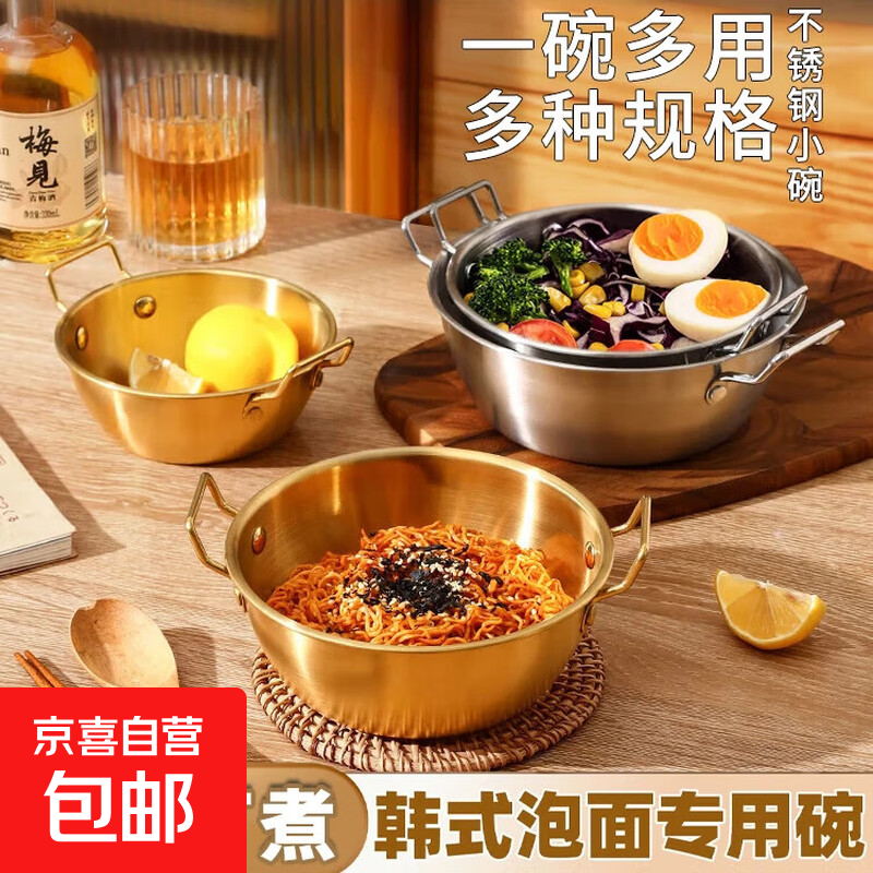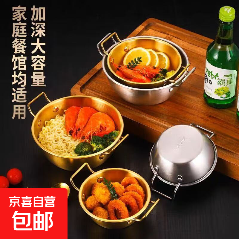 不锈钢双耳泡面碗韩式米酒碗拌面碗冷面螺蛳粉汤面碗拌饭碗餐具 23cm 金色泡面碗