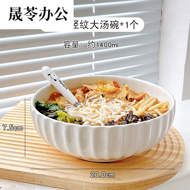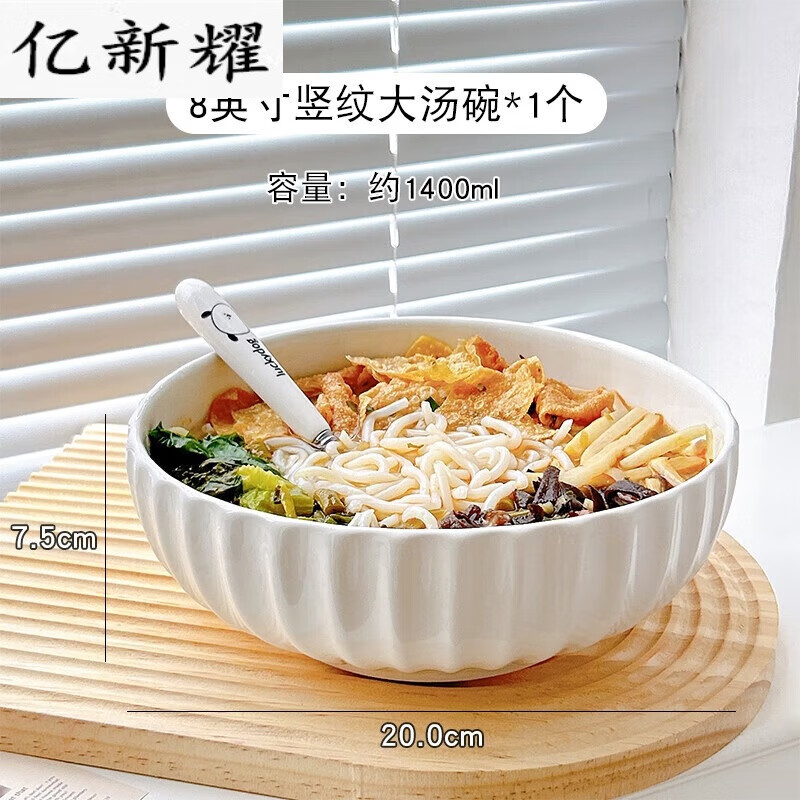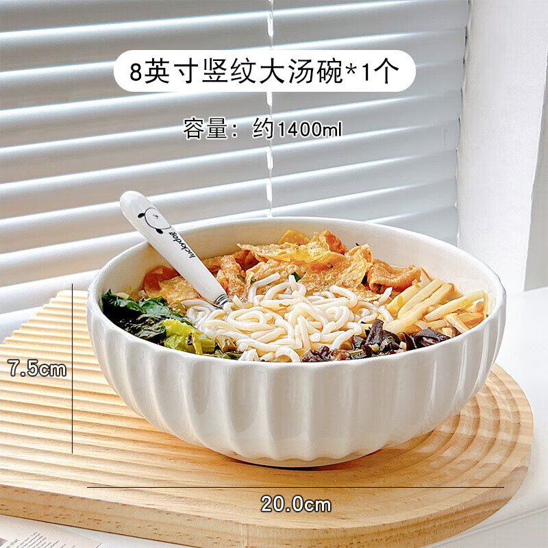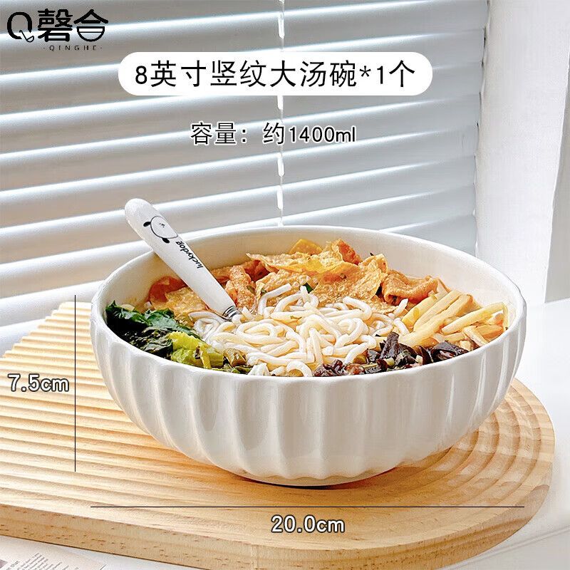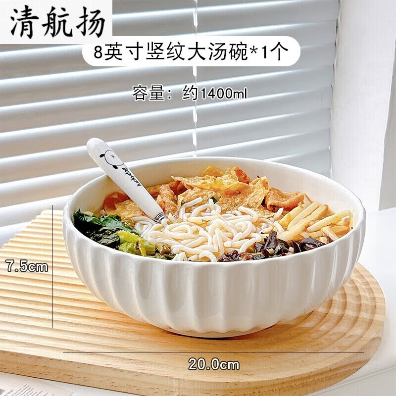 山头林村螺蛳粉碗泡面碗家用2024新款高颜值大号汤碗陶瓷碗宿舍用学生碗筷 白色-8英寸螺蛳粉碗