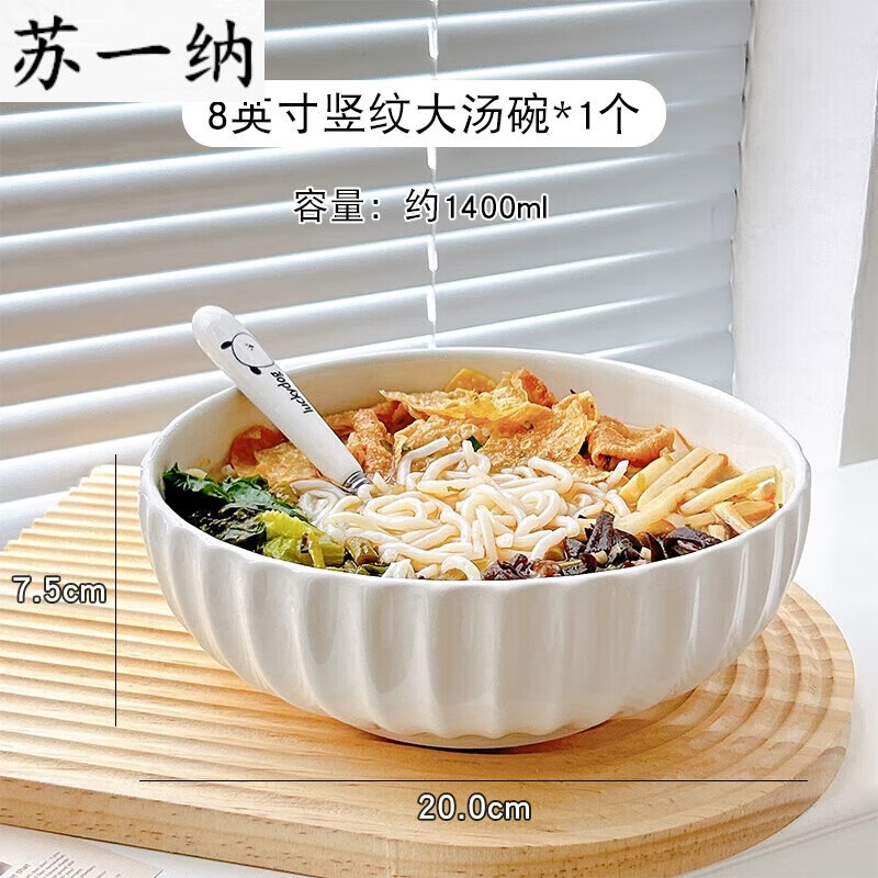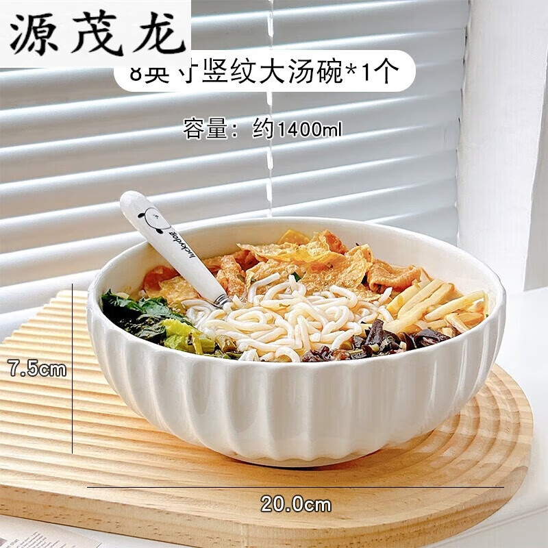 宿舍用学生泡面陶瓷家用大号汤碗单个酸菜 白色-8英寸螺蛳粉碗