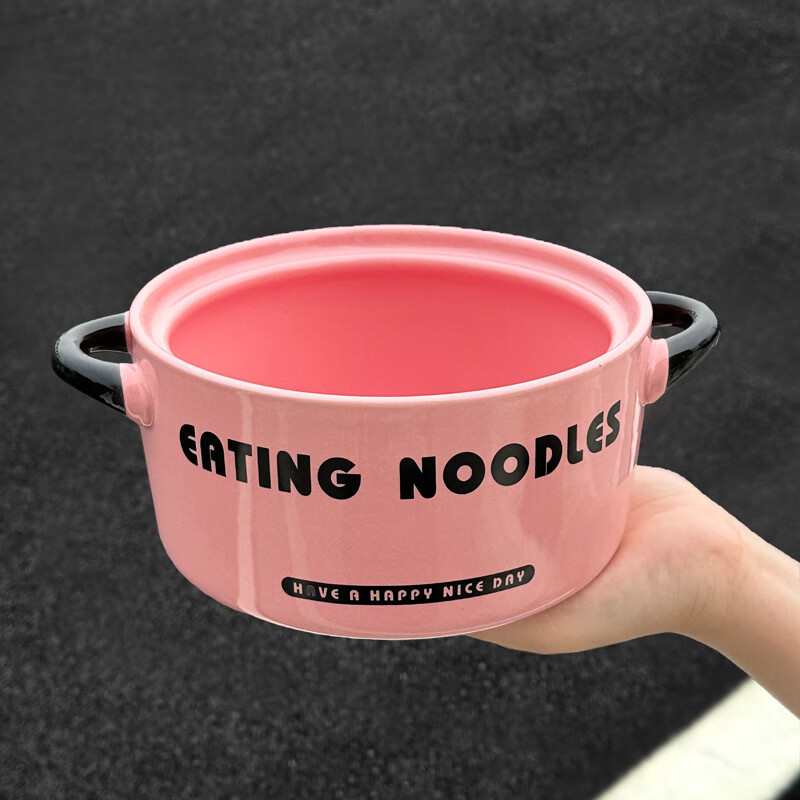 云勉草莓粉双耳汤碗家用大容量螺蛳粉碗可爱少女心宿舍泡面碗勺高颜值 【少女心】1.4L草莓螺蛳粉碗+勺