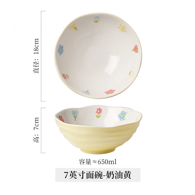 阡侗面碗家用陶瓷高颜值大碗螺蛳粉碗寸拉面碗汤碗汤面碗 奶油黄