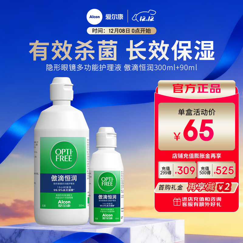 护理液美瞳眼镜杀菌保湿多功能小瓶套装 恒润300ml+90ml【单月用量】