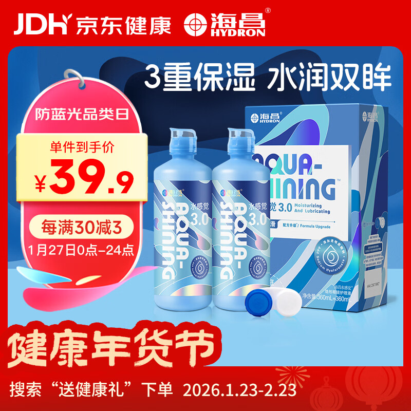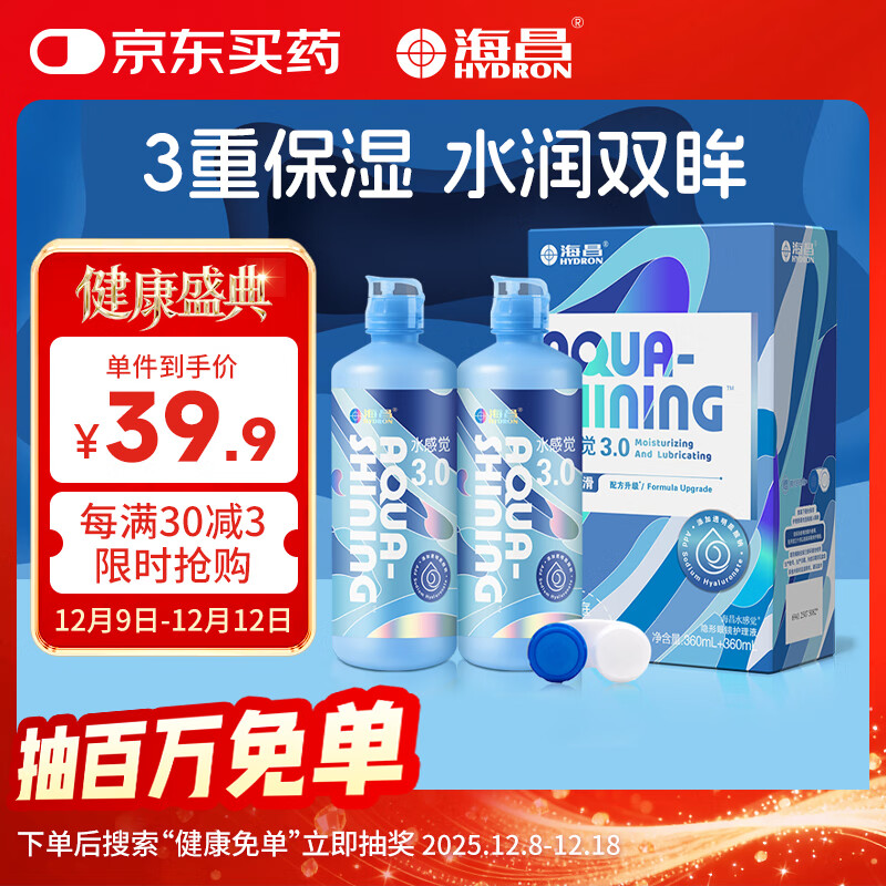 护理液水感觉3.0护理液360ml*2瓶 清洁滋润美瞳护理液