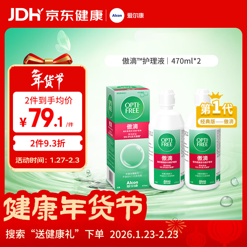 护理液傲滴355ml*2+乐明118ml美瞳月抛清洁便携