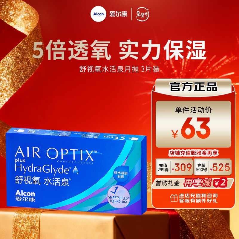 爱尔康(Alcon)视康舒视氧水活泉月抛硅水凝胶保湿高透氧近视