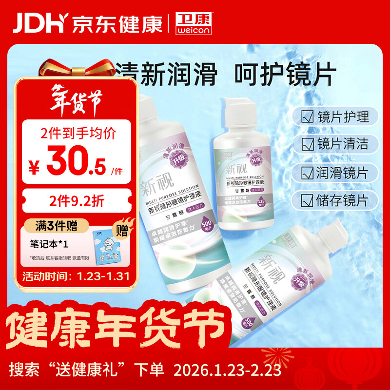 护理液 新视(甘露醇)杀菌保湿美瞳通用 500ml*2+125ml